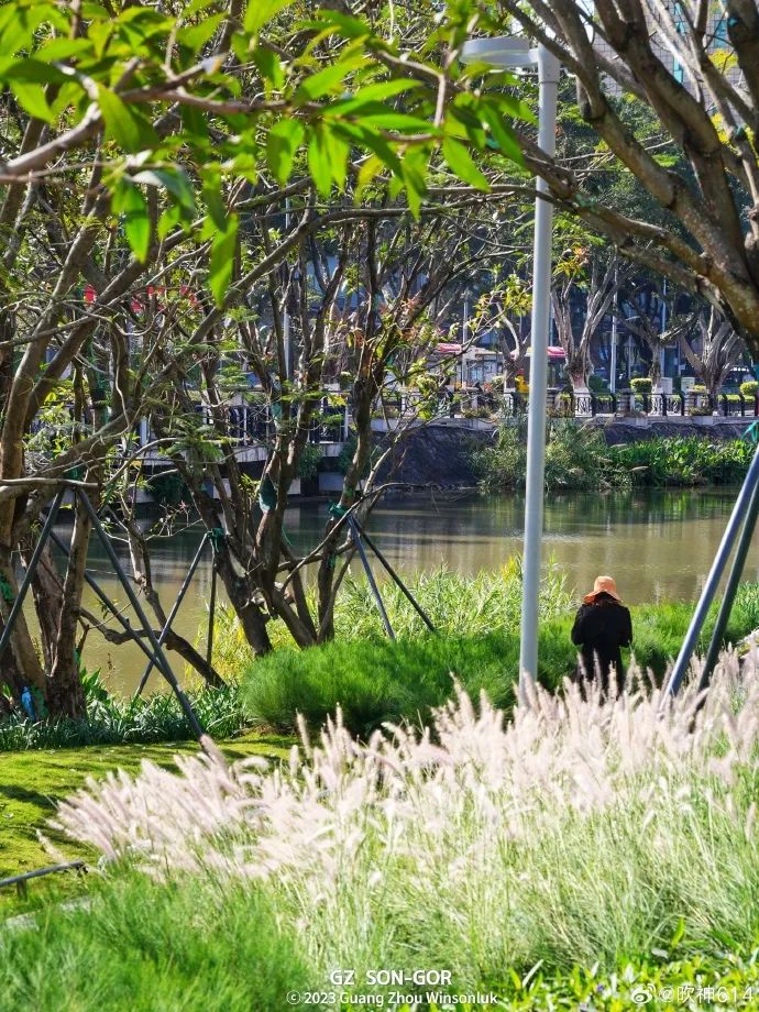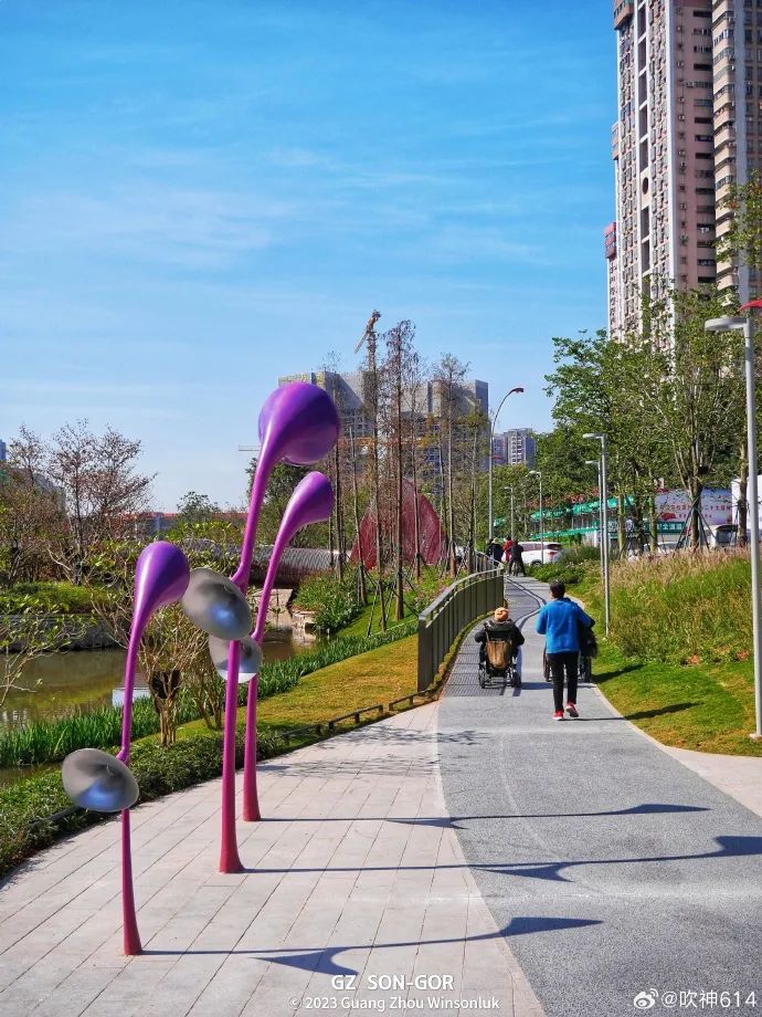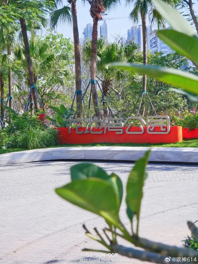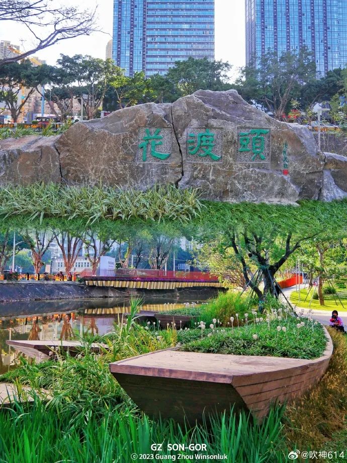 图/微博网友@吹神614花地湾公园内巧设十余个口袋公园,形成长约700米的生态长廊。
