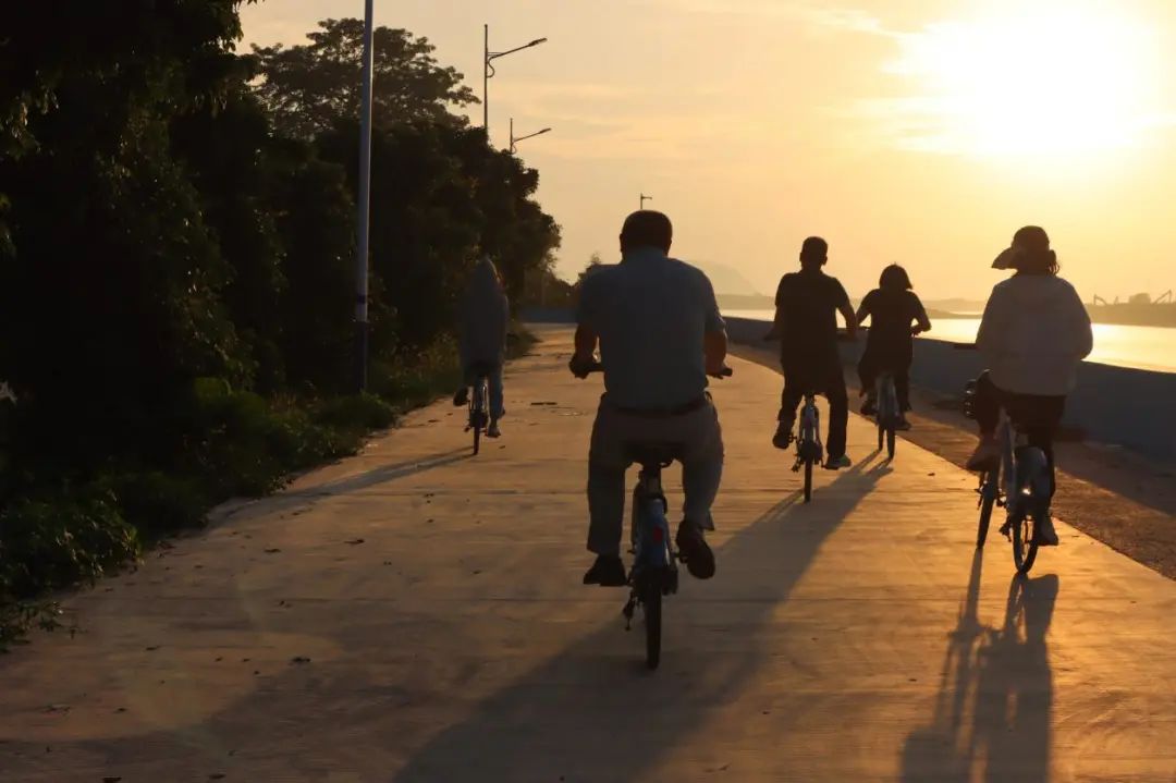 夕阳西下时,漫步在修葺一新的12公里江堤碧道上,每一秒天空都在变化,如同打翻了调色盘,每次凝视都是千姿万态、变化无穷。