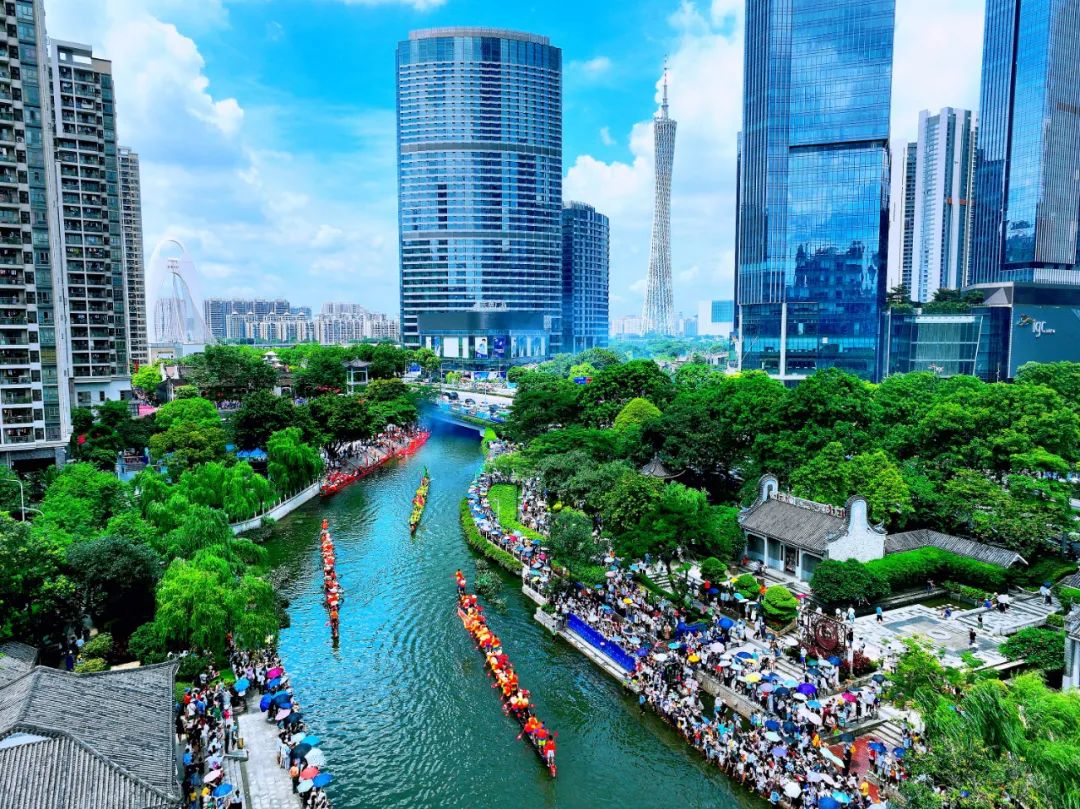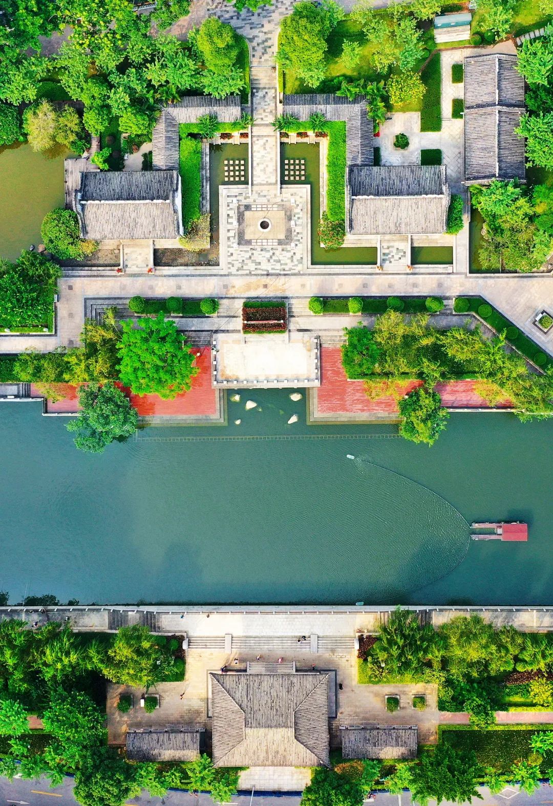 ▲从空中鸟瞰猎德涌碧道,CBD的高楼大厦与传统建筑以及河涌的碧水相互映衬。