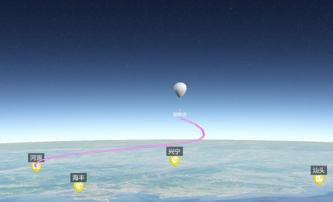 北斗导航智能探空气球高空探测轨迹,河源是广东省4个站点中的一个。“以前的数据是一个探空仪向一个地面站传输,北斗探空系统每个探空仪传回的数据都能被不同的地面接收站同时接收,在基于互联网的‘云+端’架构下,实现北斗探空业务数据资料和原始观测资料从台站直接到国家级数据库的实时传输。”市气象局工作人员马佩强介绍说。