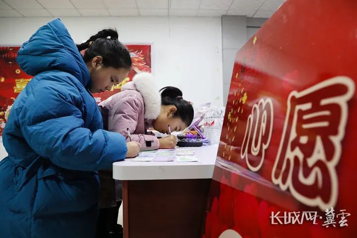 滦南县友谊路街道育才路社区,孩子们正在填写心愿单。刘兰伟 摄