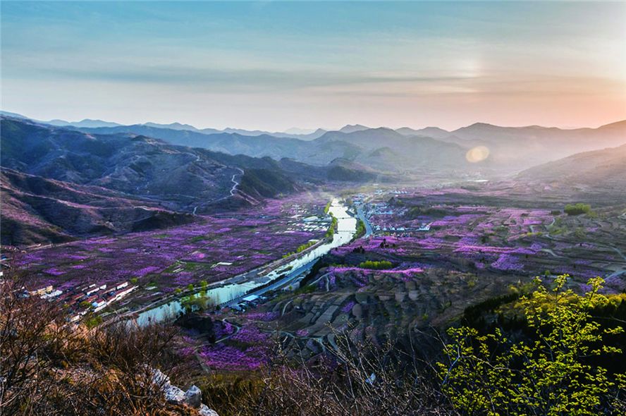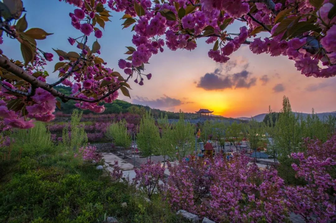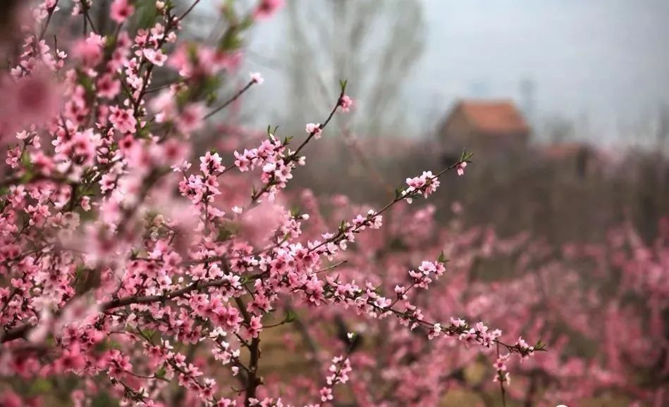 盛开的桃花像是一片片胭脂,染着博山的山河,又像是一团团云霞,映着充满生机的大地。