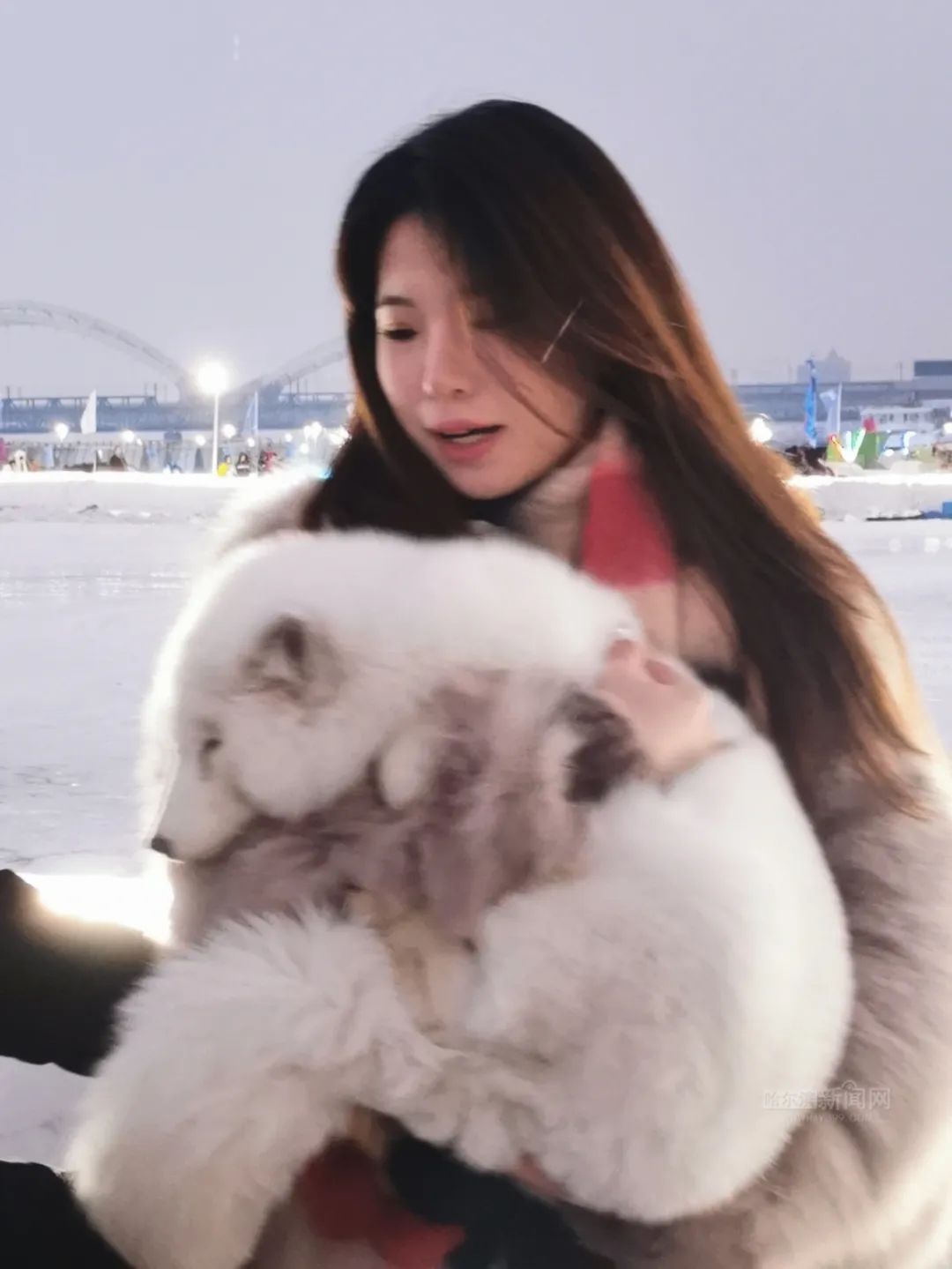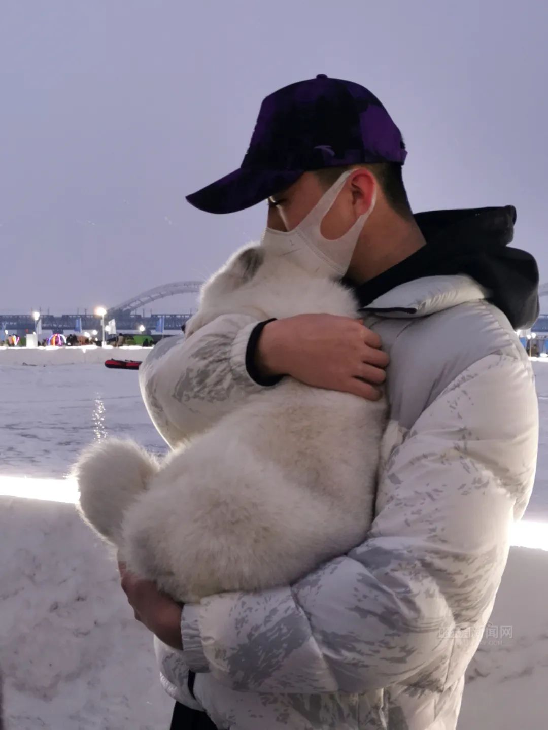 小雪狐周身长着雪白的皮毛,长长的尾巴,一双大眼睛在与游人互动时会“眉目传情”,抱起时它会自动蜷缩入怀,抱着舒服了还会进入甜甜的梦乡,“我竟然能在冰天雪地里哄雪狐入睡”让游客叹为观止。雪狐娇娇萌萌、楚楚可爱的模样,在千里冰封的松花江面成为妥妥的“显眼包”和“治愈系”。