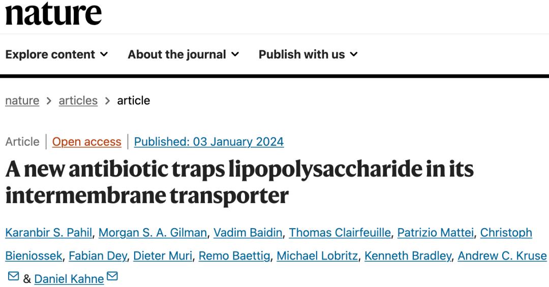 [1].Zampaloni, C., Mattei, P., Bleicher, K. et al. A novel antibiotic class targeting the lipopolysaccharide transporter. Nature. 2024. doi: 10.1038/s41586-023-06873-0