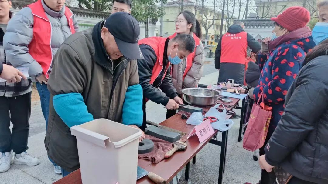 今天(1月5日)上午,堡镇综合为老服务中心门口人头攒动,测血糖、量血压、理发、磨剪刀、修鞋子……一场助老“便民服务日”活动在这里开展。