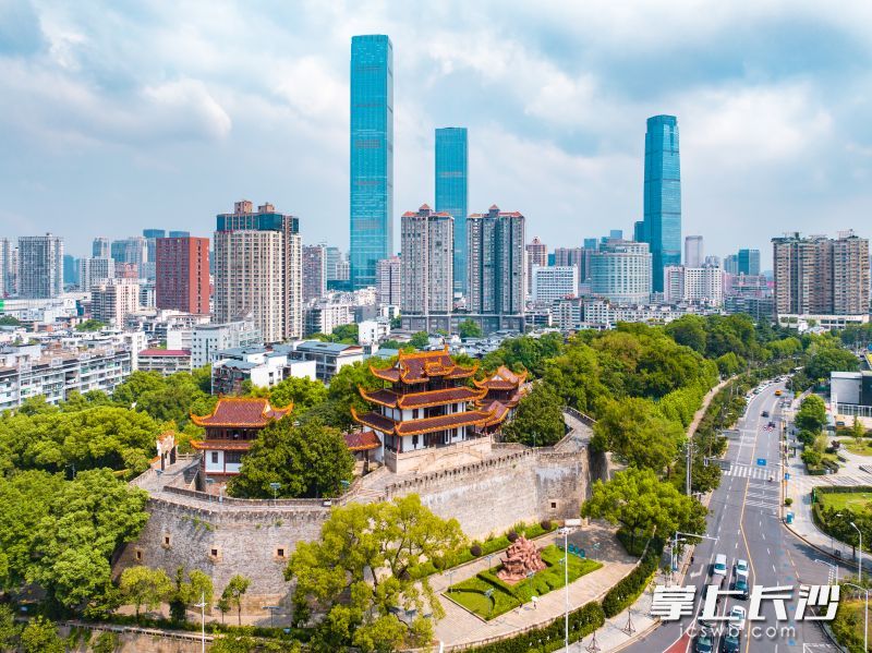 雄踞于古城墙垣之上的天心阁。长沙晚报全媒体记者 邹麟 摄