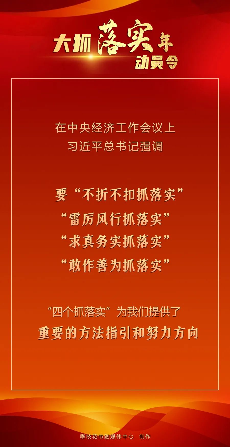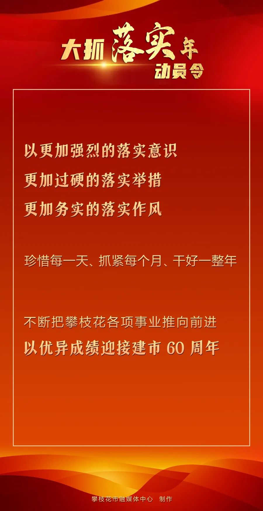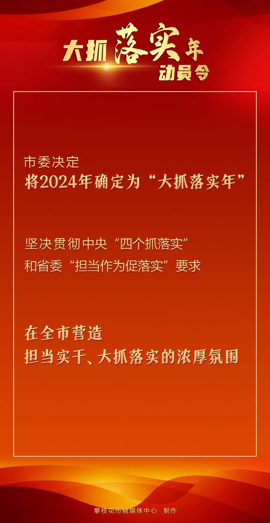 新年伊始,在中共攀枝花市委十一届七次全会暨市委经济工作会议上,市委决定:将2024年确定为“大抓落实年”!