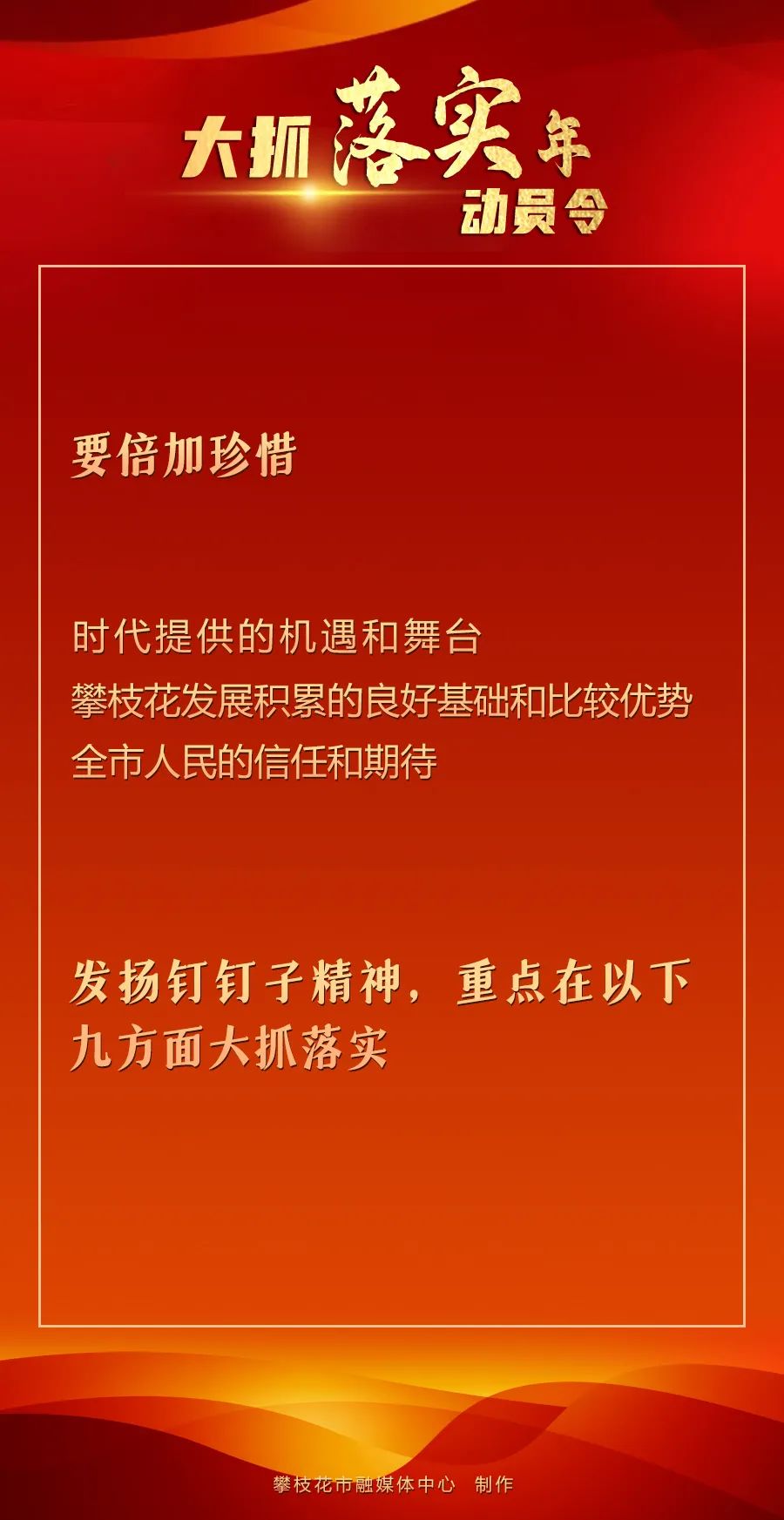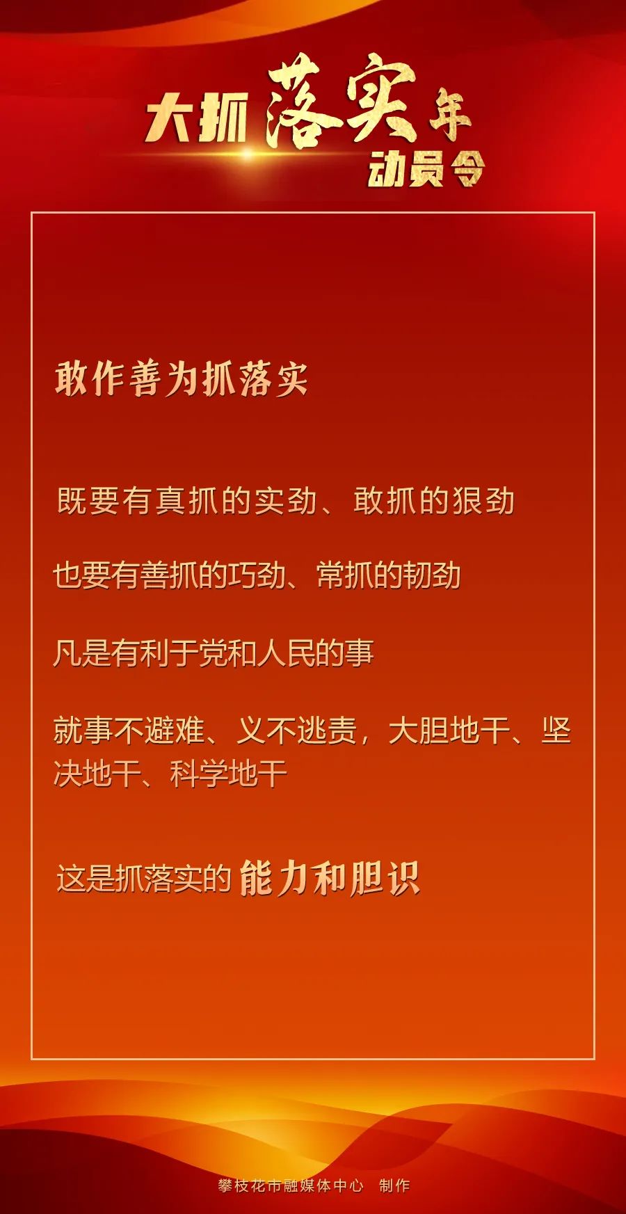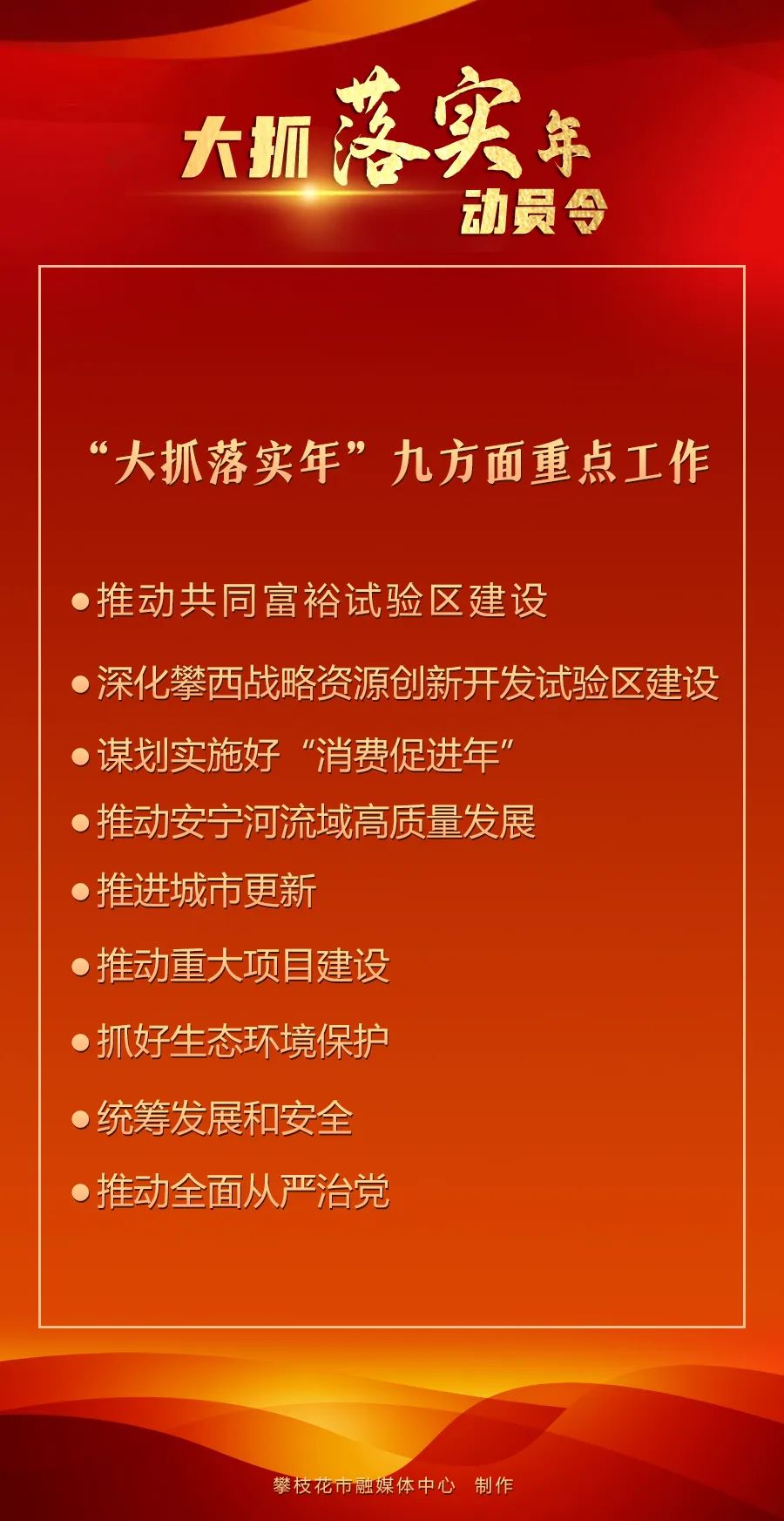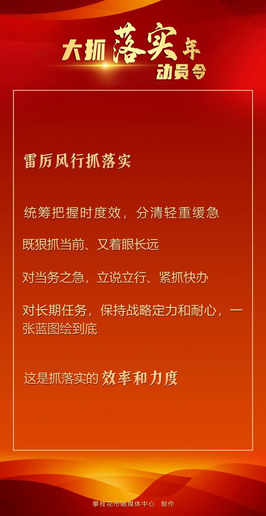 新年伊始,在中共攀枝花市委十一届七次全会暨市委经济工作会议上,市委决定:将2024年确定为“大抓落实年”!