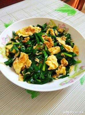 2、核桃韭菜炒鸡蛋材料:韭菜100g,核桃仁50g,鸡蛋2个,盐,白糖。