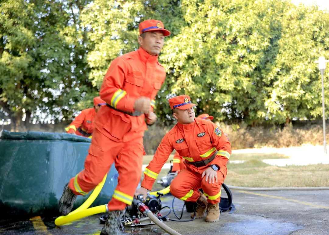 本次演练设置了高压水泵操作使用、消防水车操作使用及班组协同灭火行动3个科目。专业队员架设两台高压水泵灭火,实际火灾现场,可采取高压水泵串联、并联等方式接力,平地水源输送距离可达2公里,单泵高程达到175米。