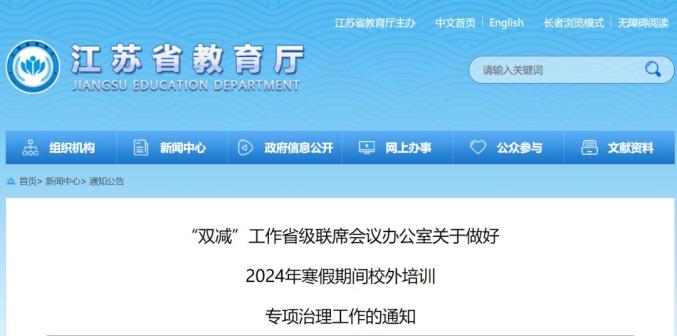 各设区市、县(市、区)“双减”工作联席会议:当前,各地校外培训治理工作已取得阶段性成效,但仍不同程度存在学科类隐形变异培训、非学科类培训监管不力、预收费资金尚未做到“两个全面纳入”、存在一定安全风险隐患等问题,距离党中央国务院要求、距离人民群众期盼还有一定差距。2024年7月是“双减”工作三年目标任务交账期,今年寒假是完成三年目标任务的关键阶段。为进一步巩固我省校外培训治理成效,严防学科类隐形变异培训,强化非学科类培训监管,切实减轻中小学生校外培训负担, 现就做好2024年寒假期间校外培训专项治理工作通知如下。