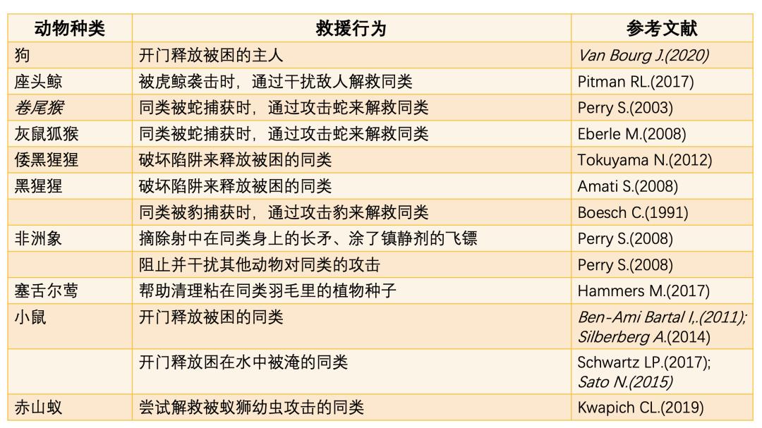 救援行动只在少部分动物中出现过丨资料整理自文献 [1]为什么救援行为仅仅在少部分动物中存在?难道“猪救猪”的类似行动,是被更高级的一种生命本能驱使着吗?