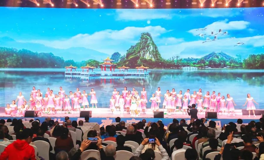 童声合唱《乡音乡情》则由广府童谣《落雨大》《月光光》《星湖荡舟》三首歌曲进行改编串烧而成;