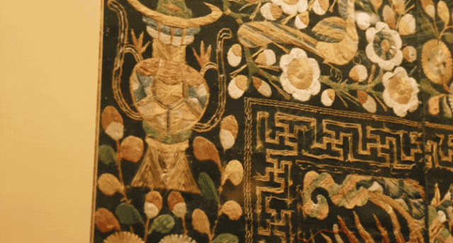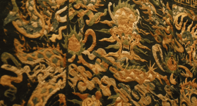 △ 复制的太极八卦麟凤呈祥图龙被。如今,除了在博物馆欣赏龙被之美