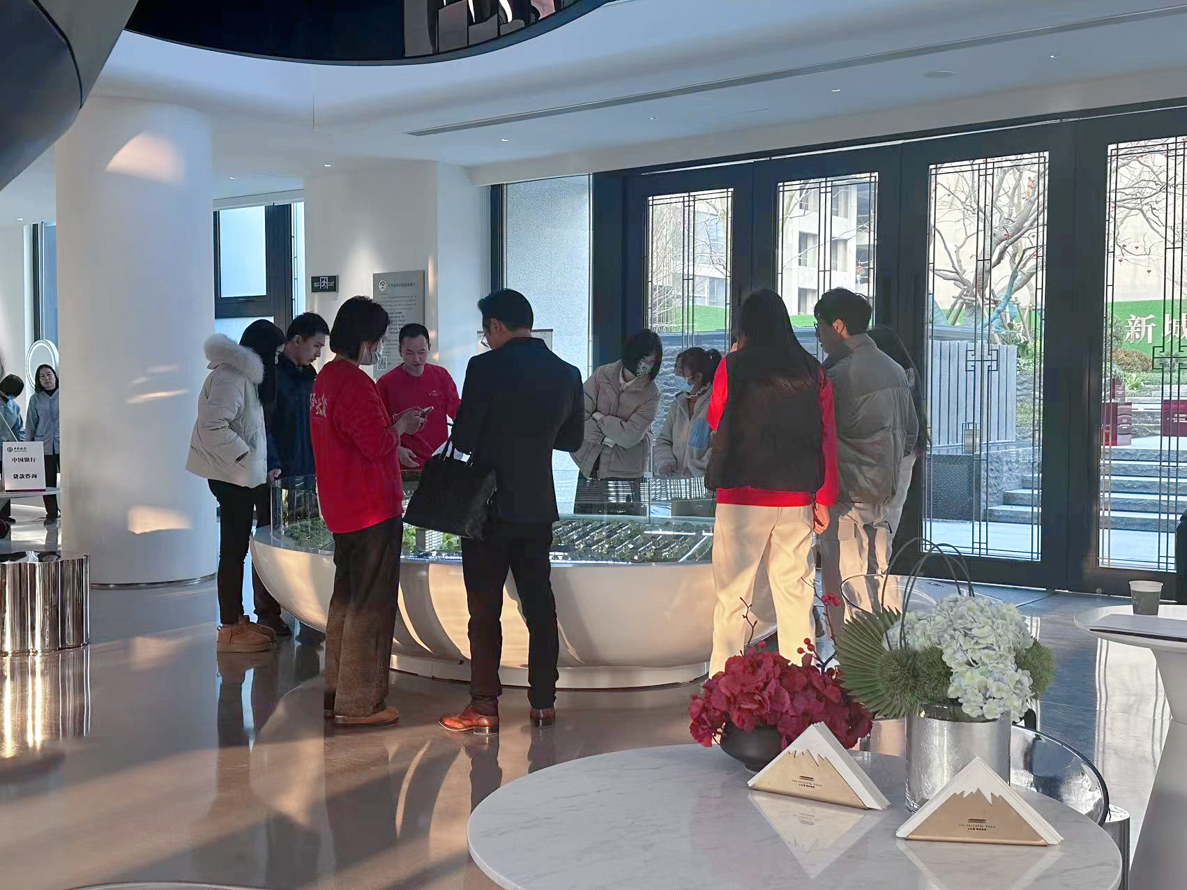 澎湃新闻在售楼处现场看到,14日当天认购结束后仍有多组客户前来了解项目。据现场销售人员介绍,上江南璟荟名庭项目二批次的认购时间为1月10日9时至1月14日12时,13日(周六)一天项目到访量近百组。同时,销售人员介绍,“一批次剩余房源续销热度持续,近4天成交7套”。