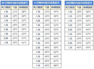 风力级别越高,身体热量流失速度越快,皮肤温度越低。风力级别很高时,即使气温不是特别低,冻伤等严重的天气相关健康问题也有可能发生。