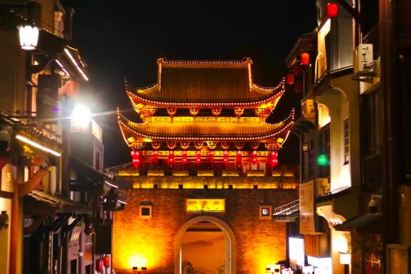 @图虫创意沿着渌江桥一路向前,直至古韵十足的醴陵门,临近傍晚抵达这里,便能看到华灯初上的古门胜景。