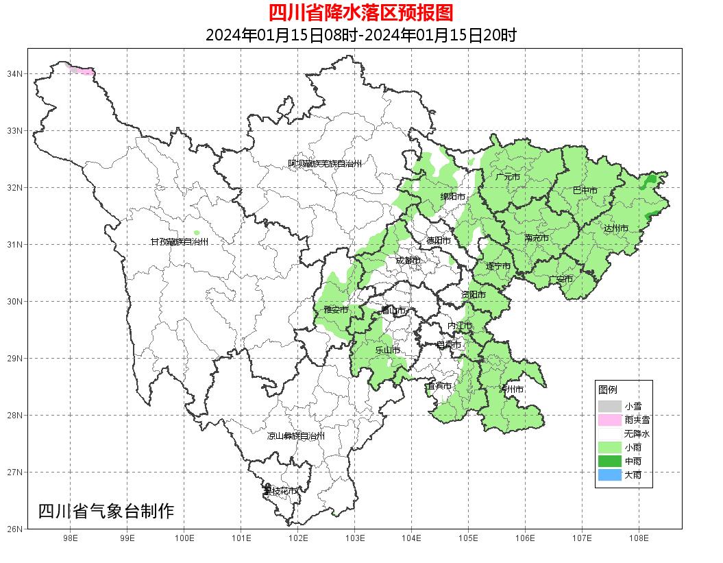 和上周的温暖相比,四川这周明显要冷一些。据四川省气象台短临预报,今天白天到晚上:盆地各市阴天,其中,广元、巴中、达州、南充、广安、遂宁、资阳、泸州、宜宾9市和内江、乐山、眉山、雅安4市的部分地方以及盆地西部沿山有小雨或零星小雨,东北部局部有中雨;甘孜州北部和阿坝州西部多云间阴有阵雪(雨),川西高原其余地方和攀西地区多云间晴。