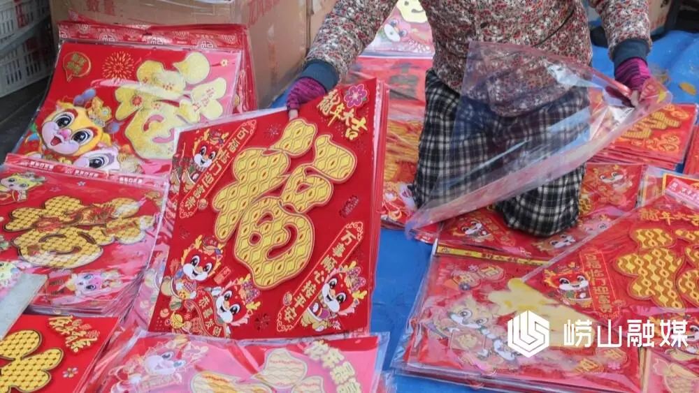 进了腊月门就离过年越来越近了,青岛市崂山区的沙子口大集上已经是年味渐浓,红红的对联,还有带着中国龙元素的喜庆福字就摆在大集入口,不少市民已经开始在这里挑选过年的用品了。