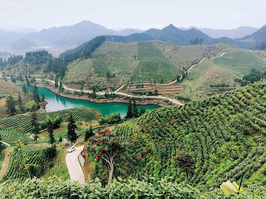 广州市花都区与安顺市普定县共建穿洞茶叶农业产业园区靛山村万亩生态茶园(安顺市乡村振兴局供图)
