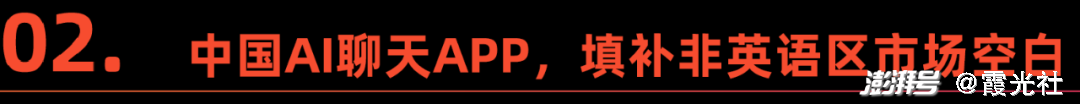 在海外,虽然来自欧美的AI聊天软件Repika、Chai和Character AI占据了大部分市场份额,但是来自中国的AI聊天APP在非英语地区的优势,却不可小觑。
