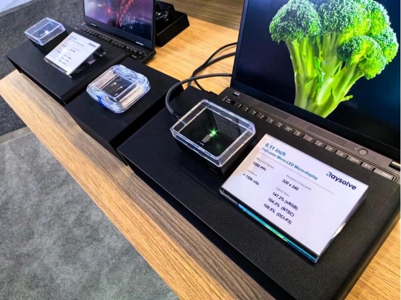 镭昱成立于2019年,是一家专注于Micro-LED微显示CMOS芯片架构设计、工艺和单片式全彩技术研究的高科技企业。此次镭昱展出的0.11英寸和0.22英寸全彩Micro-LED微显示屏在关键性能方面实现了全新升级,并展示了双目全彩光波导模组。