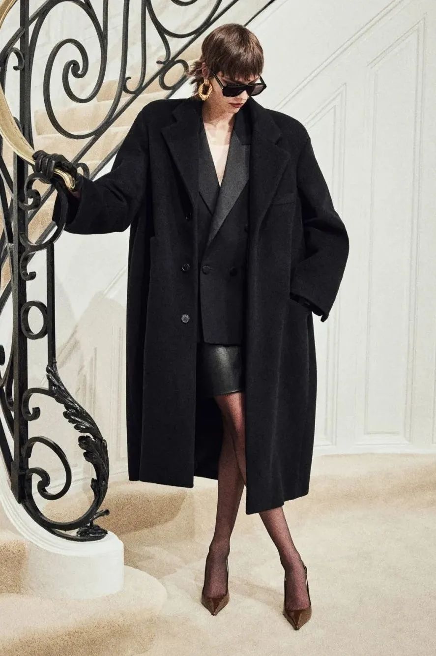 同时超大廓形是近期大衣设计的流行趋势之一,为避免整体着装过于沉闷,