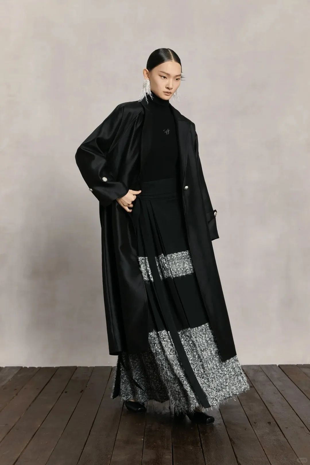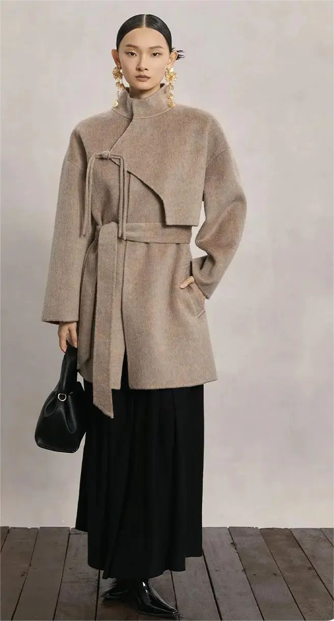 这款新中式羊毛大衣真的太好看,太高级啦!既保留了传统的盘口与立领结构又结合了不规则裁剪,新意不失东方独有的韵味,