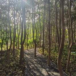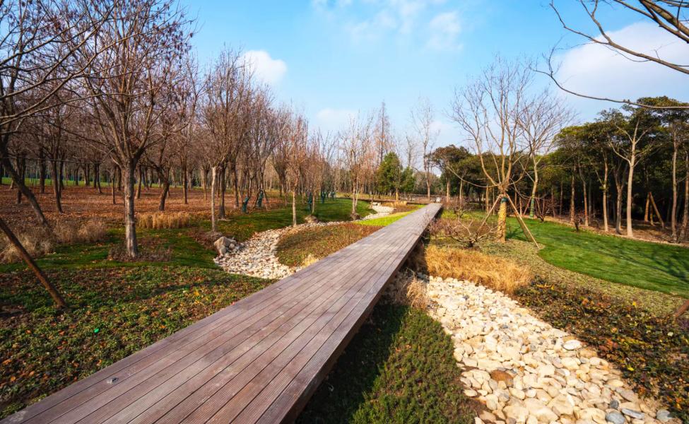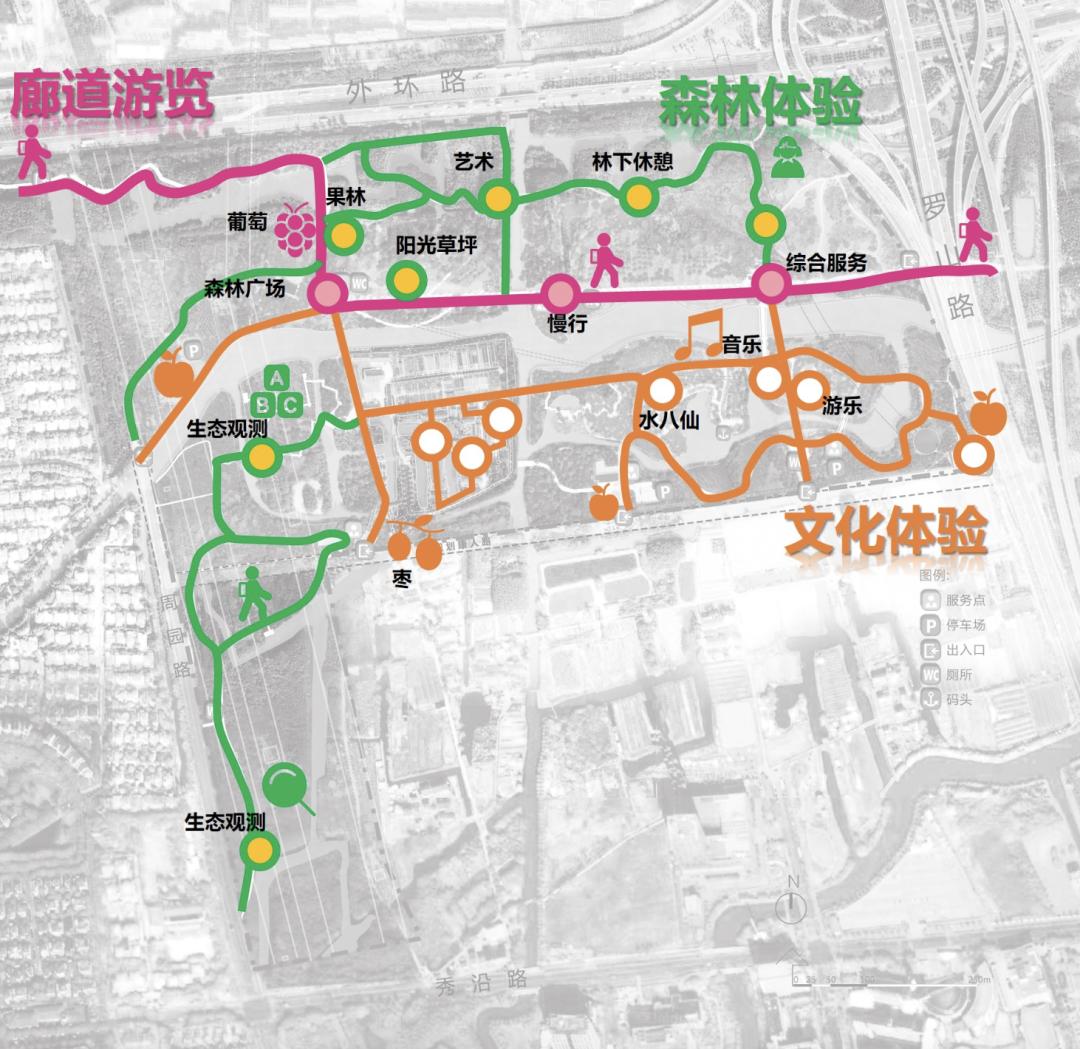 公园作为上海外环绿带的重要生态节点,结合现有30万平方米森林和丰富的水系,以森林探索、自然观察为主题,希望能让人们亲近自然,建立森林·城市·人的联系,体验分外生动的森林景观。公园主张人工干预与自然规律的融合,以低干扰森林步道和嵌入式活动设施编织休闲网络,生物栖息地则鼓励科学留白,是一座“有生命的公园 ”。