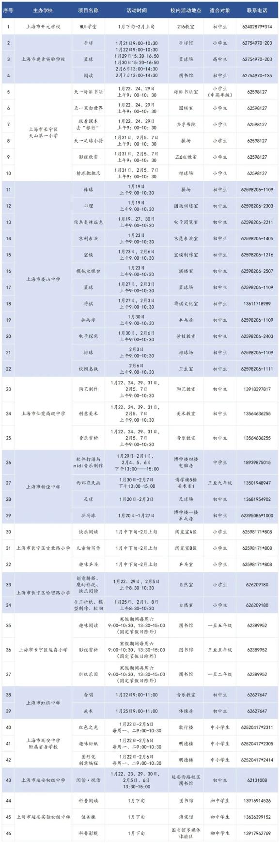 2024年长宁区城市学校少年宫寒假活动预告