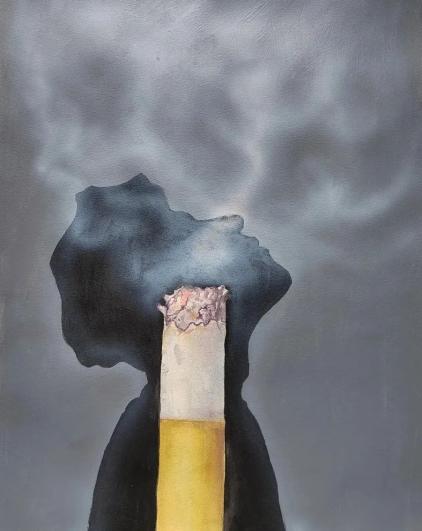 画画的时候刚调好颜料,抽完烟回来,颜料已经干了。烟灰掉进咖啡中。烟头把衣服烫破……这些小而不定期发生的事情,折磨着被烟控制着的人生里。
