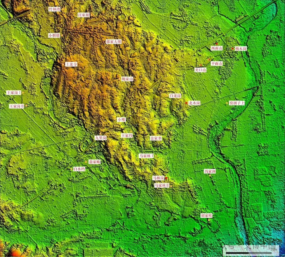 九里岗区域高程模型与遗址(地点)分布遗址地层涵盖了