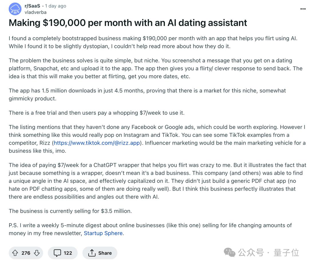 [3]https://www.reddit.com/r/SaaS/comments/199dm4k/making_190000_per_month_with_an_ai_dating/?share_id=eBN7dEwhki-FGN-R6nTLB