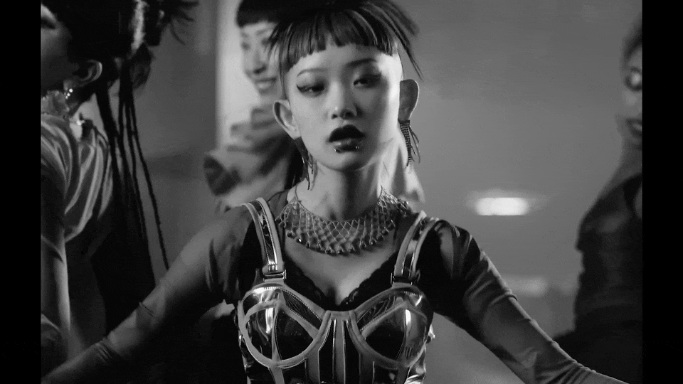 眉上整齐的刘海,挑染的粉色直发,后脑勺被剃得干干净净,下唇的两颗唇钉,高高翘起的眼线,桃心状的耳朵,灿烂无邪的笑容。这些都组成了诗羽,这个不被流行左右,拥有独特气质的女孩。如今能以一种完全不用改变自己的方式进行表达和创作,是诗羽感到最幸运的。 从挑战“可爱”的规则开始,诗羽最终成为了站在舞台之上,被台下观众大呼“太可爱了”的表演者。