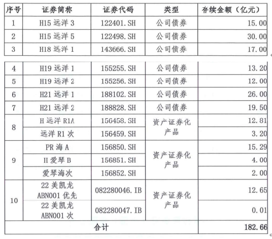 1月26日晚间,远洋集团(03377.HK)公司全资附属公司远洋控股集团(中国)有限公司发布公告,截至本公告日,公司旗下7只公司债券和3只资产证券化产品的展期方案已获持有人会议表决通过,共涉及金额182.66亿元。