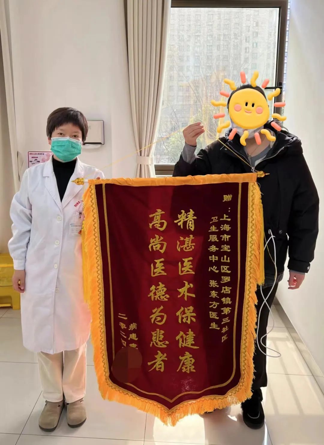 又到了定期复诊时,袁先生及家属携着一面鲜艳的锦旗走进家庭医生张东方的诊室。烫金色的“高尚医德为患者,精湛医术保健康”,是对基层社区卫生服务中心家庭医生团队工作的认可,更是对分级诊疗制度落实的信任。“厚德至善 精医卫民”,罗店镇第三社区卫生服务中心的院训彰显在中心每一个医务人员的温情服务中。
