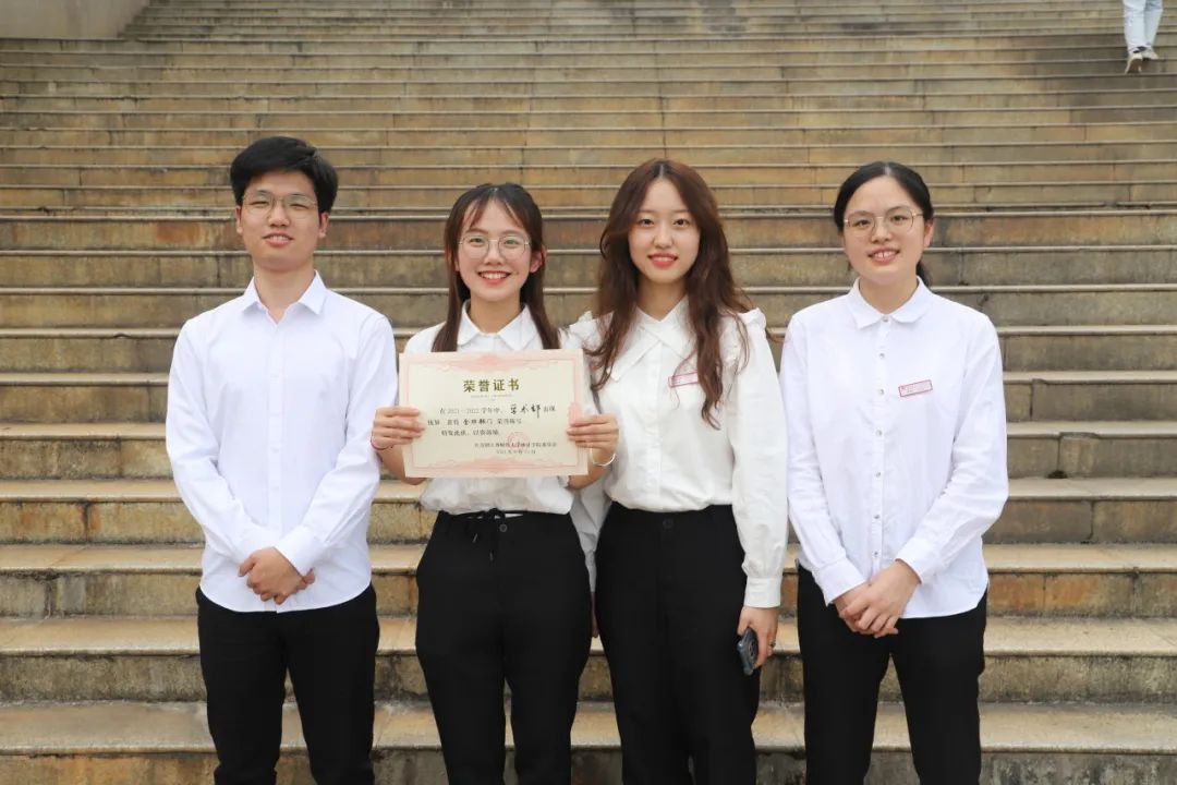 纵观侯雨菲的大学生活,各类比赛占据了一大部分,她也积累了许多对学习甚至对人生都很宝贵的经验。“完成一次成功的比赛需要有好队友的支持”,侯雨菲说道。在历时一年的挑战杯竞赛过程中,她遇到了像家人一般的团队成员,齐心协力共同应对层层挑战,在比赛提升自我的同时收获了难忘的经历。“在选择队员的时候可以多与其他学院的同学组队,这样既可以发挥出大家的学科优势,又可以广交朋友,这也是参加比赛的一大意义。”