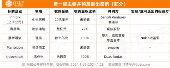 1.Sanofi Ventures 将以总价 22 亿美元收购 Inhibrx