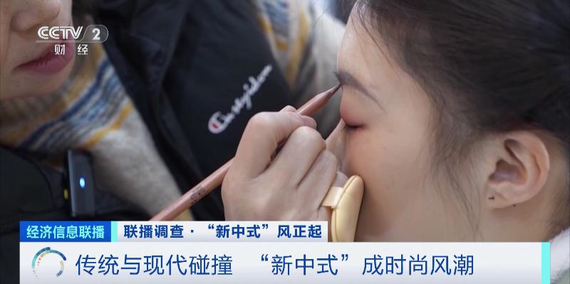 除了日常服饰,“新中式”元素也在各大景点流行。在浙江西塘古镇的一家汉服馆里,一位店主正在给顾客进行妆造,没有厚重的粉底、假睫毛,轻薄的妆容反而放大了顾客鹅蛋脸、单眼皮等特点。店主告诉记者,“新中式”妆容讲究“人妆合一”,一切由自身面部特征出发。浙江嘉善西塘镇某汉服馆负责人尹斯羽:“现在基本上进店的客人当中,寻找这种‘新中式’方向的,起码比之前要上升50%。”