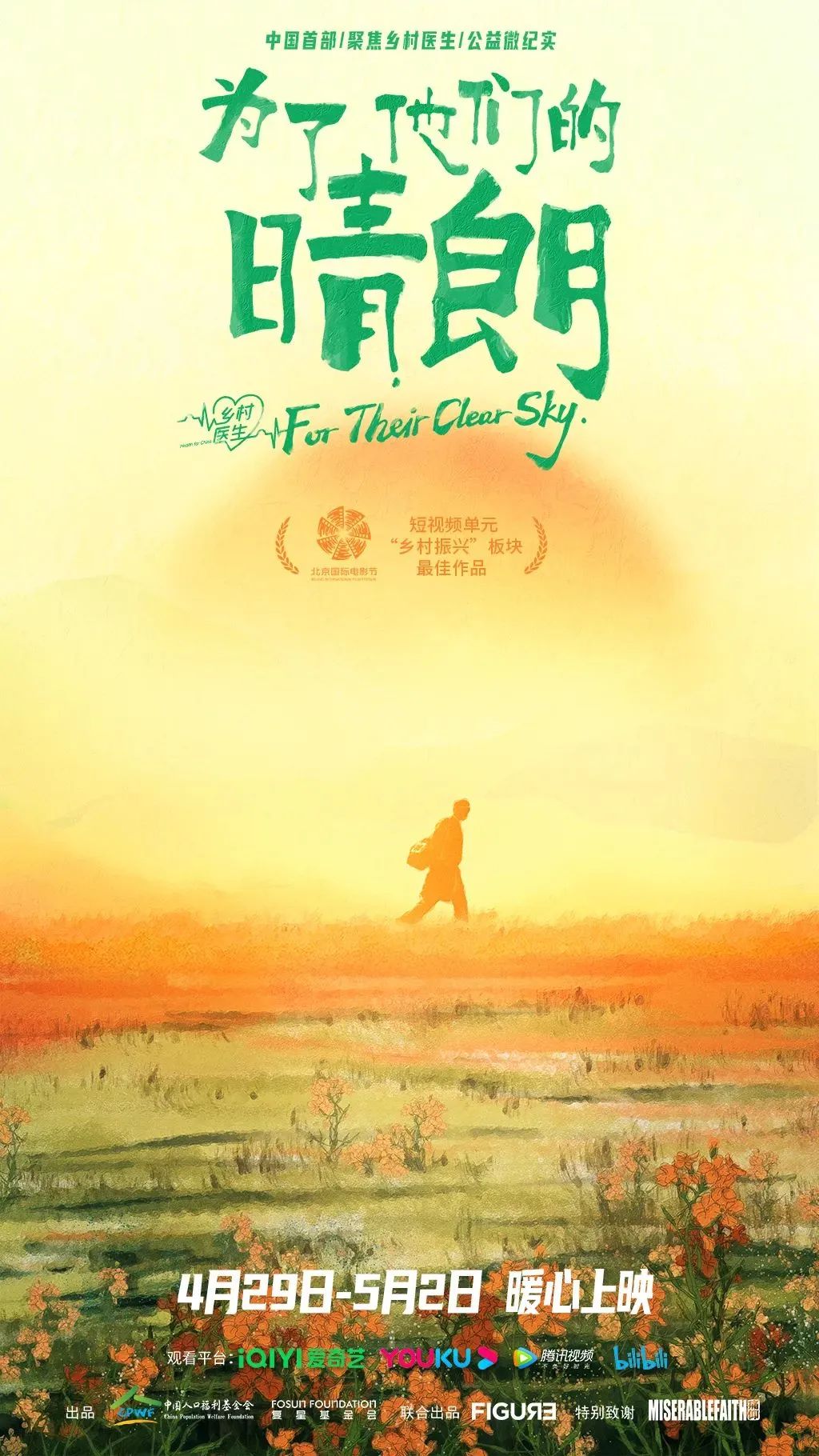 四集微纪实《为了他们的晴朗》邀请「乡村医生守护者」痛仰乐队和多位公益伙伴(老狼、陈贝儿、小鹿、滇西小哥等)一道,深入云南、江西、海南等地的乡村探访。在最真实的镜头记录下,四位村医展现了他们的坚韧、专注和生活百味,为村民带去光芒。