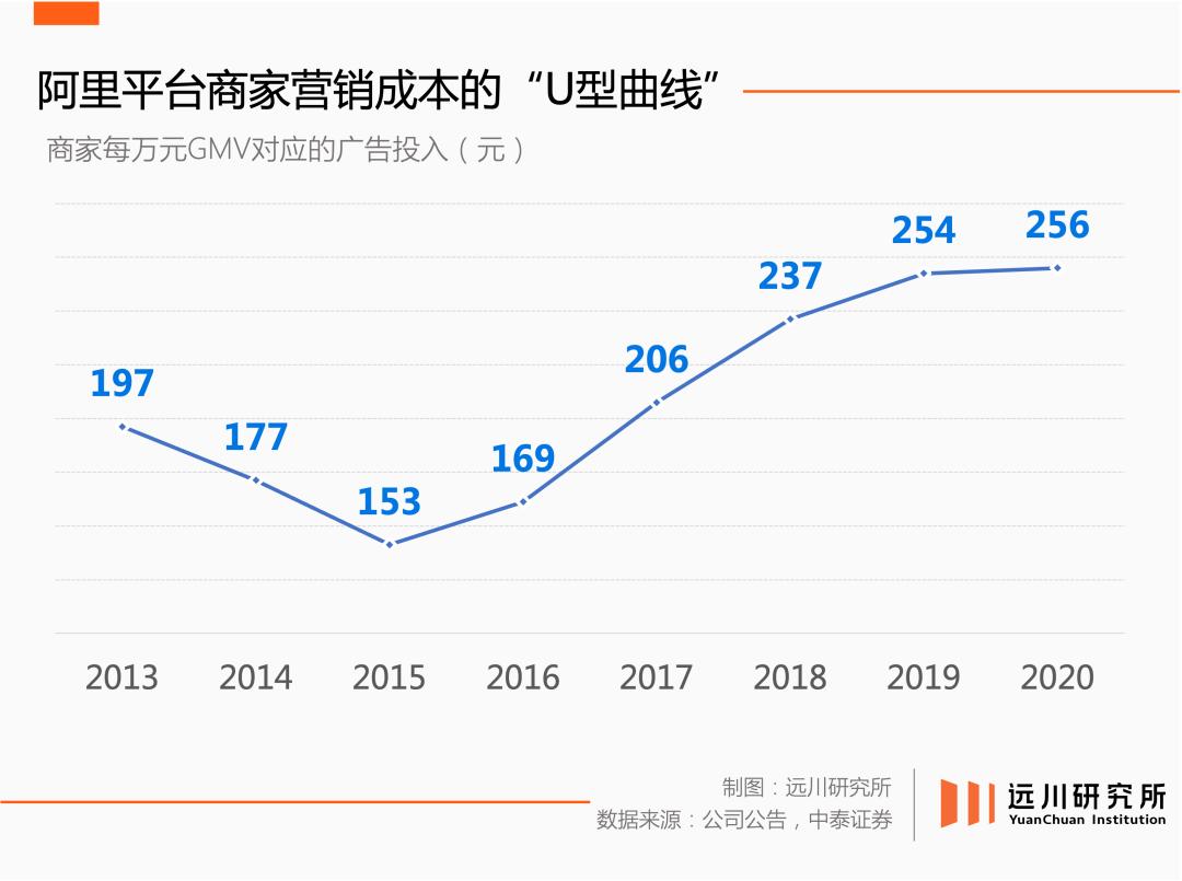 新消费两难窘境背后,则是流量成本在过去数年间,走出的一道先升后降的U型曲线: