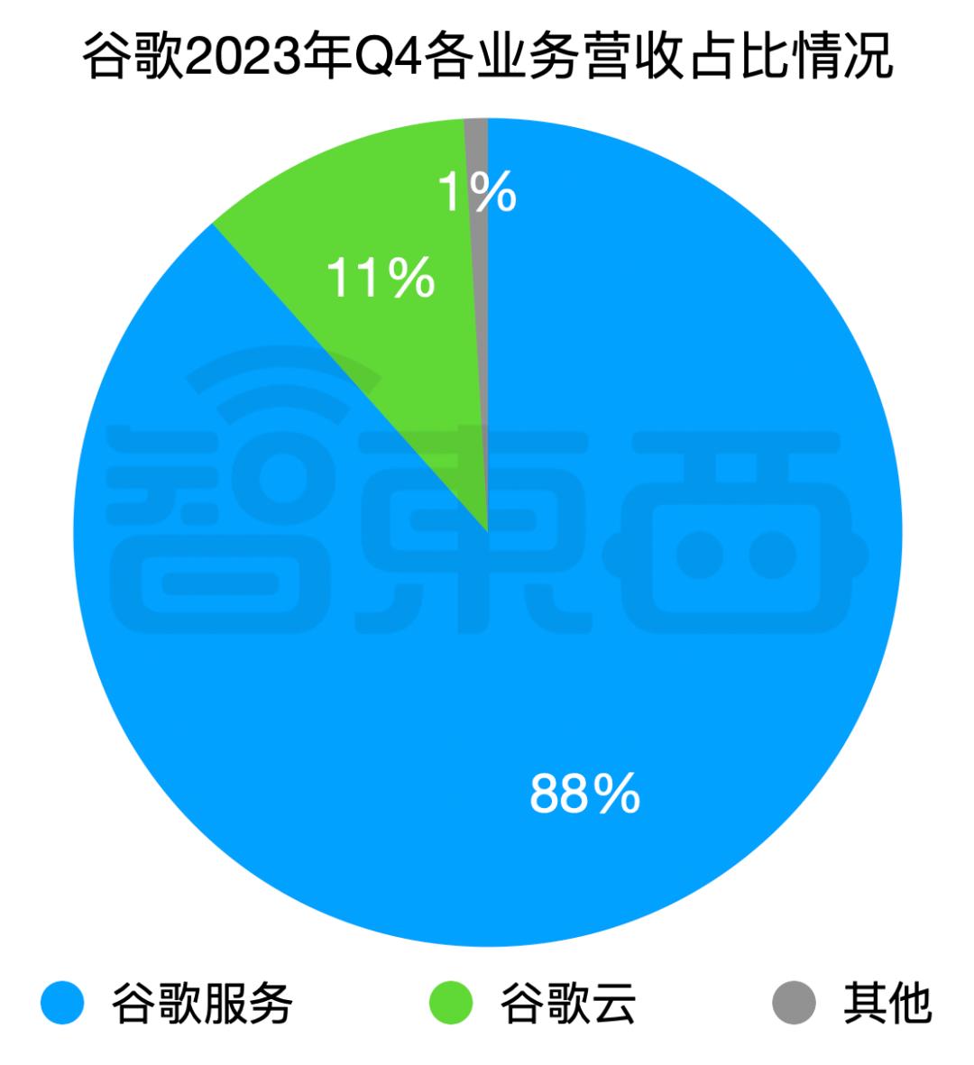 ▲谷歌云与微软智能云近几季度营收同比增长情况对比不过,谷歌云占谷歌整体营收仅11%,体量相对较小,对谷歌整体大盘影响力要低一些。