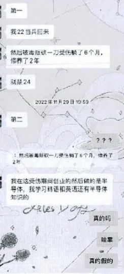 2022年11月26日,孙某在“牵手”app上认识了周女士,在知道周女士的择偶标准是上海本地人后,他将ps过的身份证发给周女士,不仅伪造310开头,连名字都是假的。他还谎称自己当了5年多特种兵,立过二等功,曾经被毒贩砍一刀受伤后休养了两年,在受伤期间创业做半导体生意,还自学了韩语、英语。