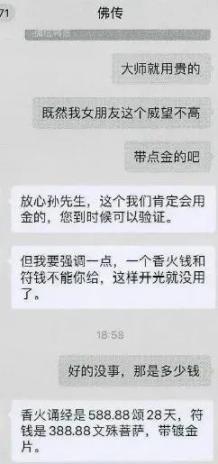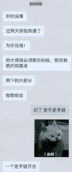 警方通过调查孙某手机内交友软件和微信的聊天记录,发现孙某竟然有4个微信号,分别用于和不同“女友”聊天。报案人之一的丁女士提到,孙某声称自己当过兵,给她看过一条短信内容是:孙少尉您好,根据征兵工作最新条例,自5月1日施行,如发生战争,请您立即到武装部报道,如果未按时报道,将按照逃兵处置;祖国因你而骄傲,愿山河无恙(上海武装部)。自此,丁女士便对孙某产生了军人滤镜,对他所说的话更是深信不疑。在和孙某处于热恋期时,孙某声称认识一名香港的黄大仙非常灵验,想为她祈福,但是因为黄大仙说不是丈夫本人不能代为付钱祈福,想让丁女士付钱用于香火、诵经、为手串开光。为了打消丁女士的顾虑,孙某还将与黄大仙的聊天记录截图发给她看。实际上,这全是孙某自编自导的一出戏!黄大仙是孙某的另一个微信号,专门用来设局欺骗丁女士,所谓需要开光的手串也是孙某在网上花几十块钱买的,再定高价骗丁女士转账。直到2023年春节后,孙某与她的联系频率大幅下降,丁女士才产生怀疑。