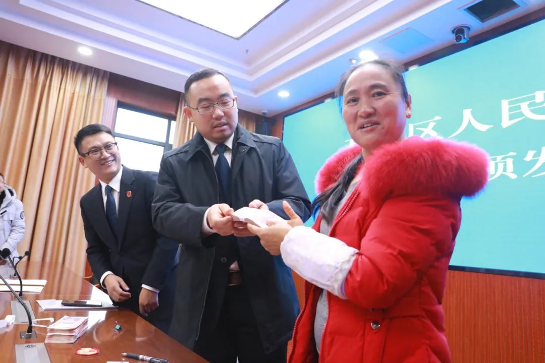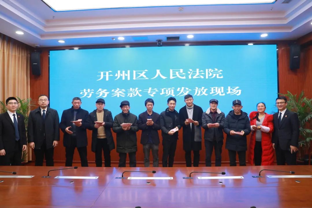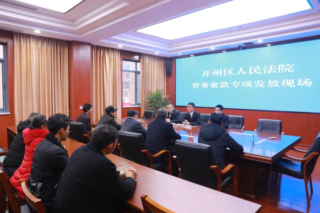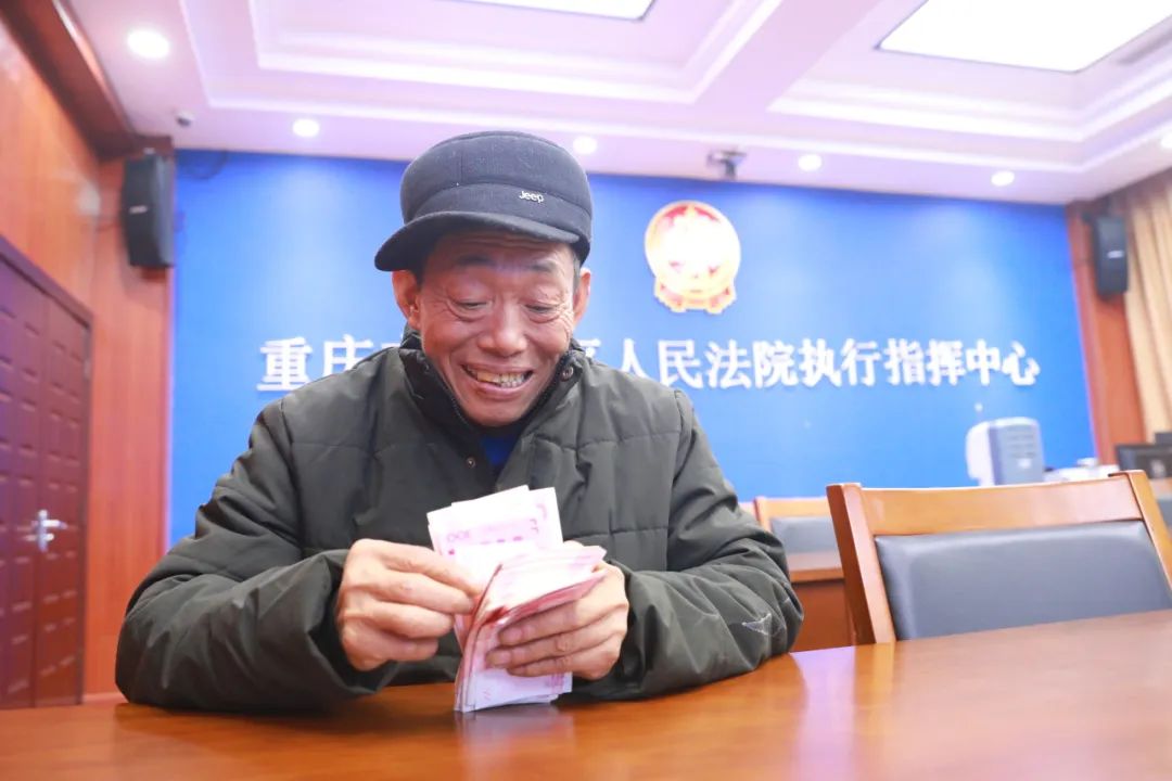 “为了挣点辛苦钱,我们夫妻俩和儿子三个人在工地,和儿媳、孙子常年分居,听说老板找不到,我们一家几天都吃不下饭。多亏法院帮我们把钱要回来,可以给孙子买身新衣服了。”旁边的工友傅大姐也说道。