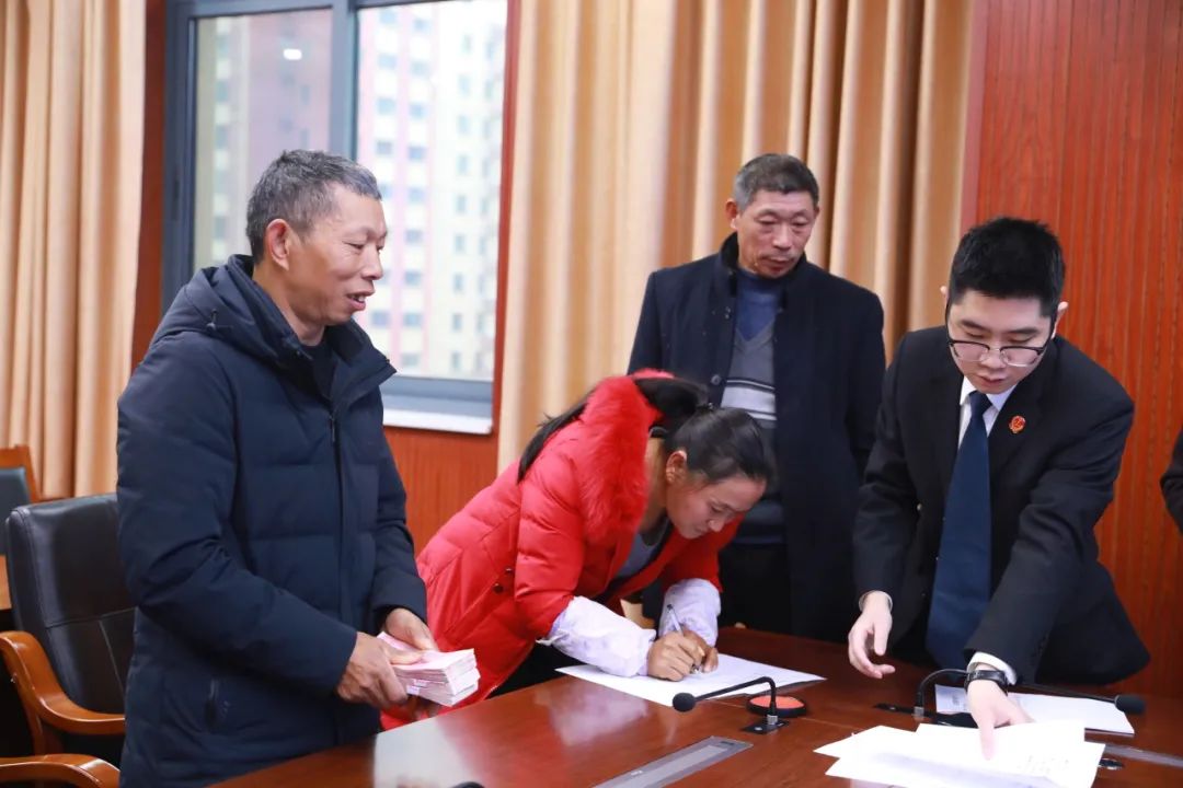 次日一早,“工头儿”老鄢和工友们等人来到法院,领取了自己“迟到”的工资,看着拿在手中的现金,工友们终于可以安“薪”过年了,脸上迎来了久违的笑容,在这寒冷的季节,笑容仿佛化去了岁暮天寒,像阵阵暖流徜徉在执行干警的心间。