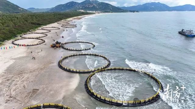 去年8月,新一代深水网箱在台山下海,助力广东现代化海洋牧场建设。南方日报记者苏韵桦 摄@滨海旅游