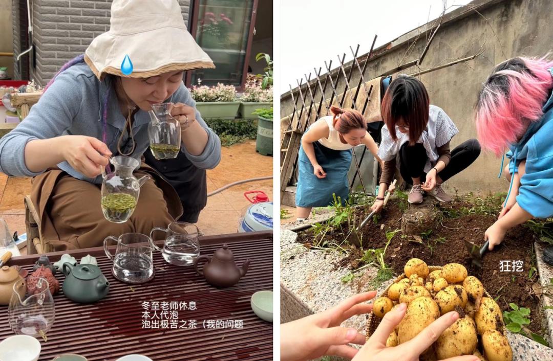 有一次,我听了一档关于茶的播客,节目里,嘉宾邀请听众去他的茶庄免费品茶。周末,我就带了七八个朋友一起去到他杭州的茶庄喝茶。老板让我们品尝了几千块一斤的茶叶,也给我们对比了便宜的茶叶。作为回报,我们在他的菜园里帮他挖了土豆。