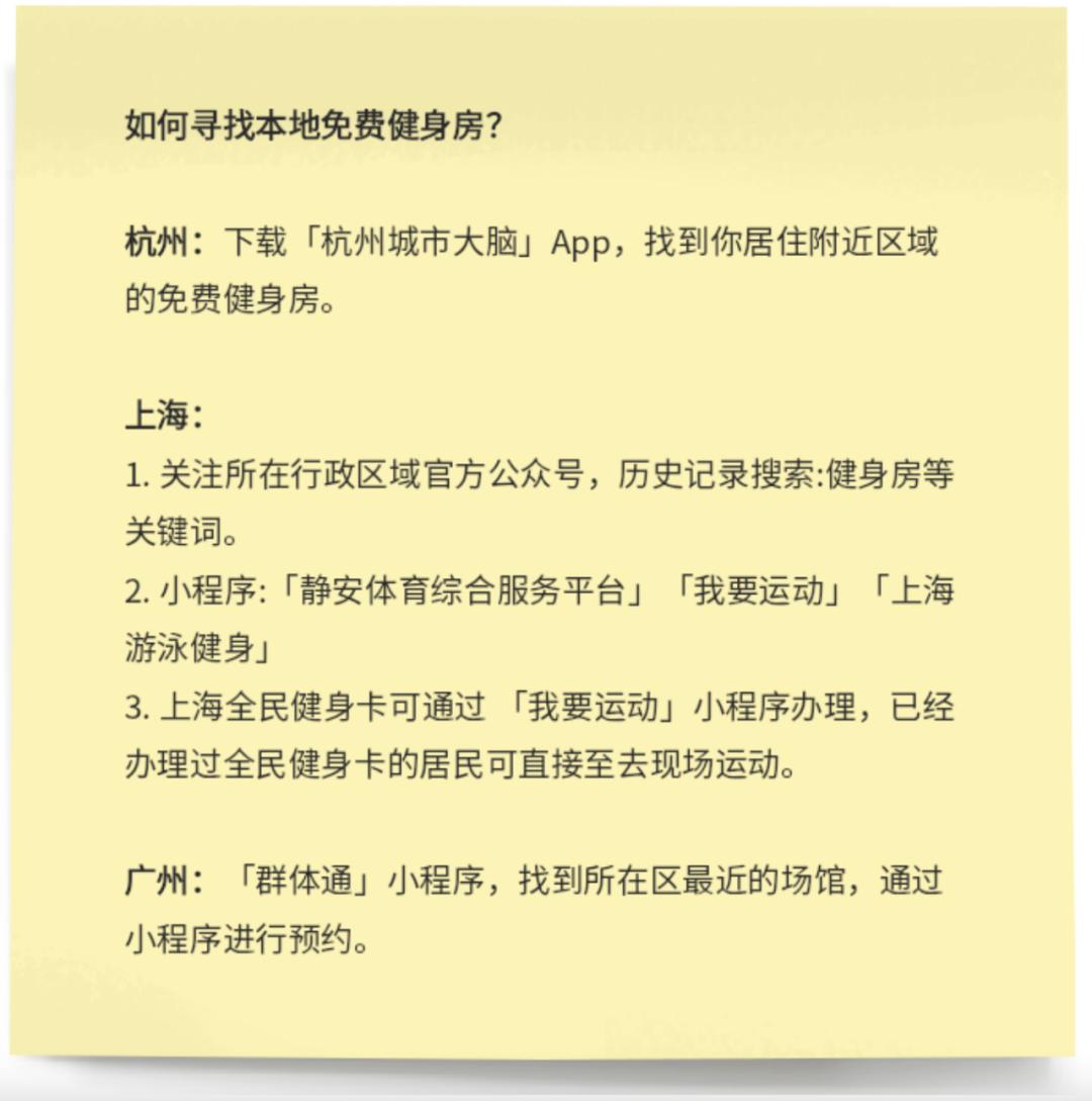 除了户外运动,在室内健身也可以是不花钱的。杭州政府为了鼓励市民健身,在每个街道都开设了一个“百姓健身房”,并且大多都是免费开放。此外,很多学校的操场、游泳馆也都是对外开放的,当我发现这一点的时候,我觉得自己像是发现了新大陆。