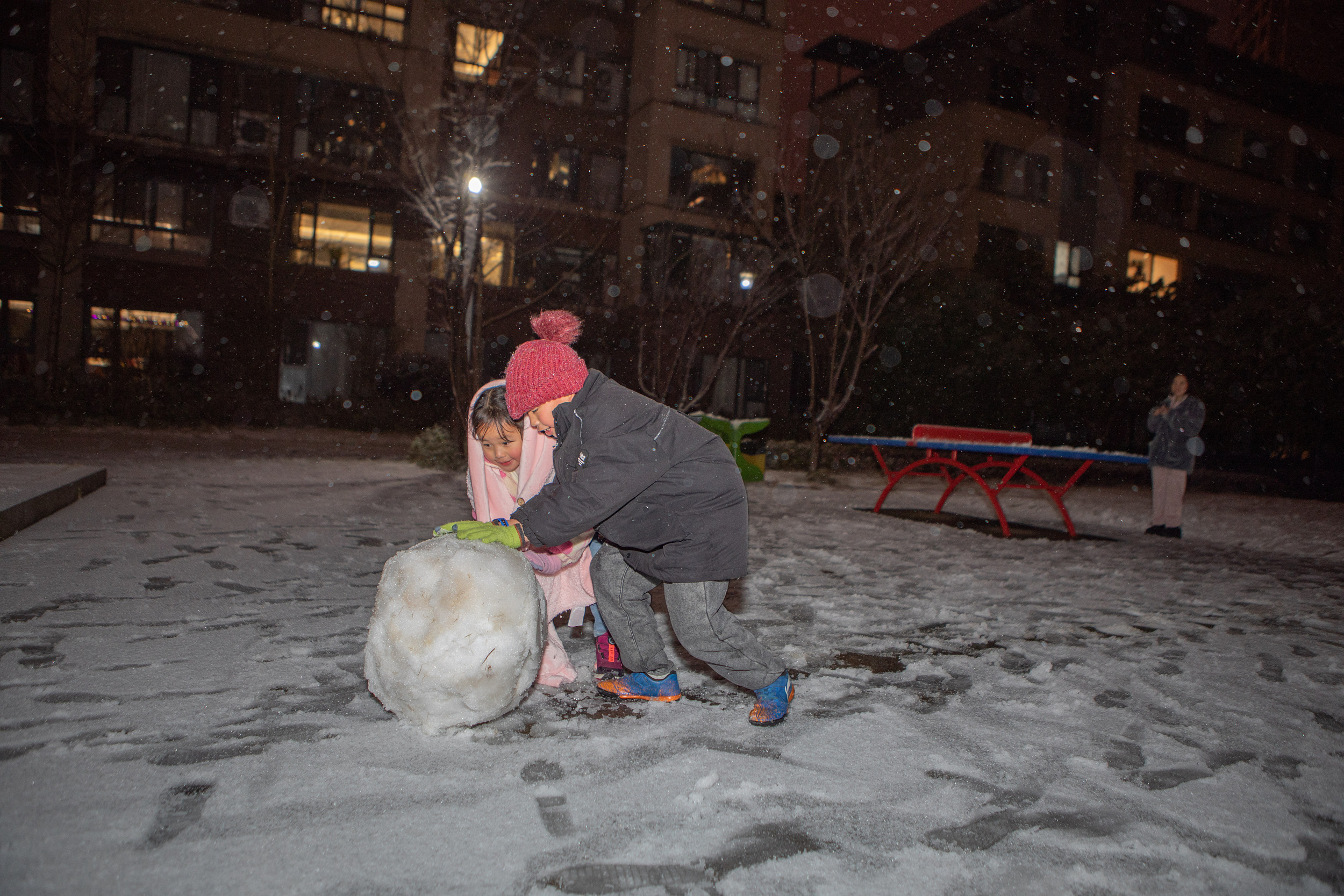 2024年2月3日晚,受寒潮影响,重庆秀山土家族苗族自治县迎来降雪。 视觉中国 图